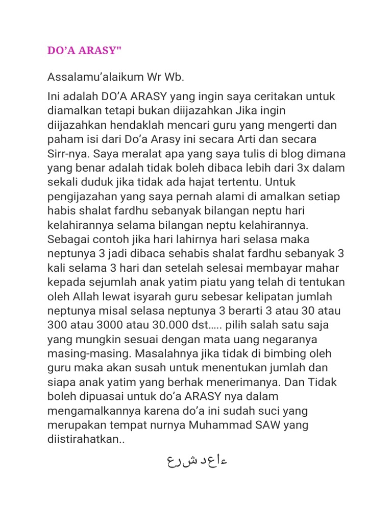 Doa arasy / doa arasy ini berbeda dengan doa kanzul arasy yang sudah banyak dikenal.