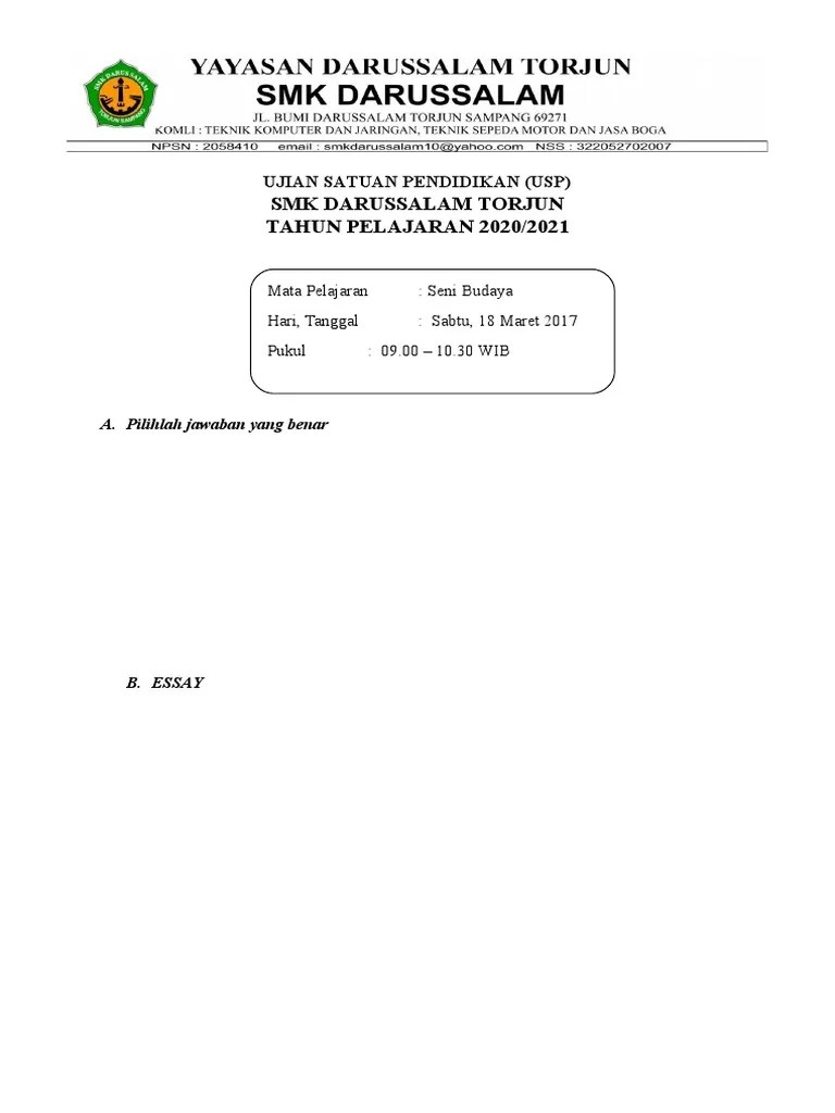 Soal Usp Seni Budaya 2021 : Ujian Satuan Pendidikan Usp Tp 2020 2021 Sma Islam Malang / Dicariguru.com berikut ini akan kami bagikan perangkat pembelajaran atau administrasi berupa silabus k13 seni budaya smp kelas 7,8 dan 9.