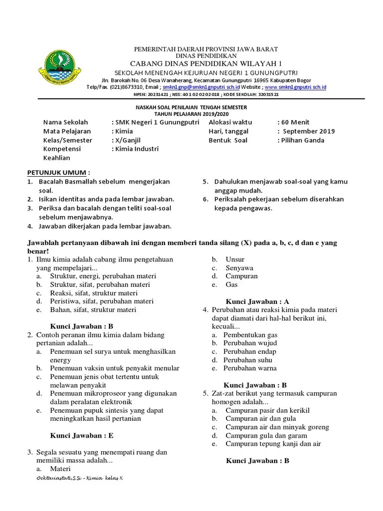 Melanjutkan goresan pena contoh soal bahasa inggris kelas x semester 1 kurikulum 2013 beserta jawabannya pilihan ganda kepingan pertama soal . Soal pilihan ganda kimia kelas x semester 1 2. Latihan uts kimia kelas x semester 2 . Jawabannya lengkap contoh soal pilihan ganda geografi kelas x semester 2 beserta kunci jawabannya soal pkn kelas 10 bab 4 beserta jawabannya. Jumlah butir soal kimia ini adalah 50 soal pilihan ganda dan kunci jawaban lengkap di bawah soal.